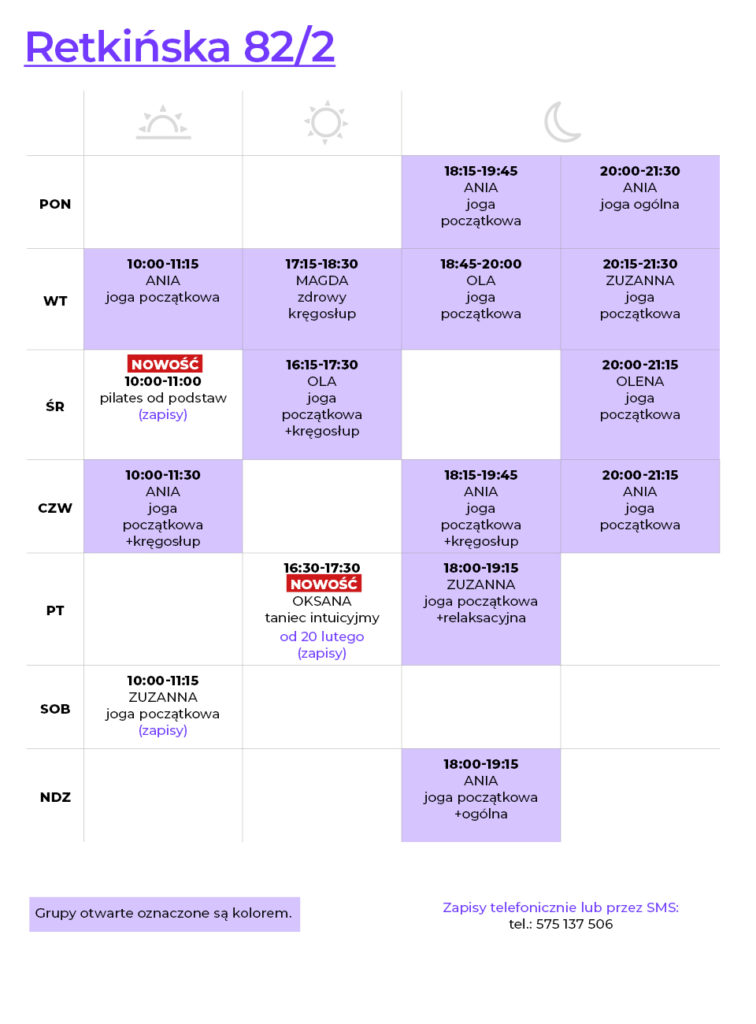– na zajęcia poranne zapisują się najpóźniej dnia poprzedniego.